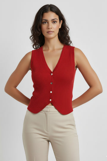 Chaleco con escote en V y botones al frente.