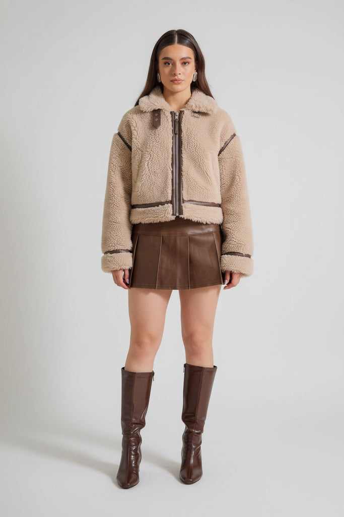 Con cuello amplio con hebillas, cierre frontal, bolsillos laterales y vivos contrastados tipo piel. Silueta relajada y puños con vuelta para mayor abrigo.