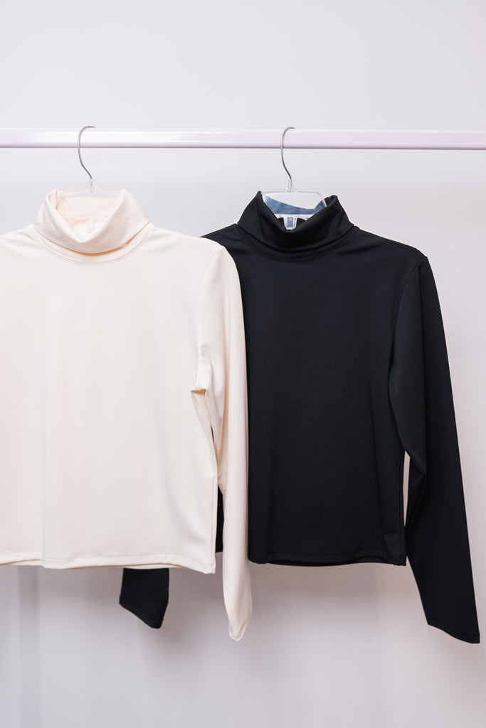 Blusa de manga larga con cuello alto. Diseño liso y ajuste recto