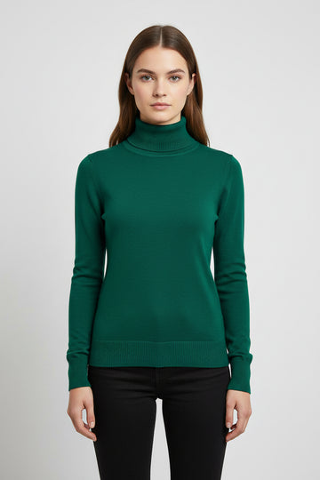 Blusa de manga larga con cuello de tortuga. Diseño ajustado y acabado liso.
