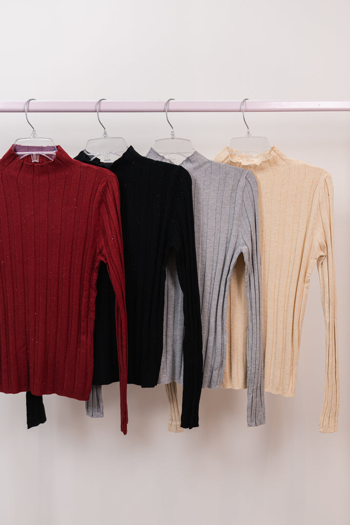Blusa punto acanalado. Cuello medio alto y manga larga.