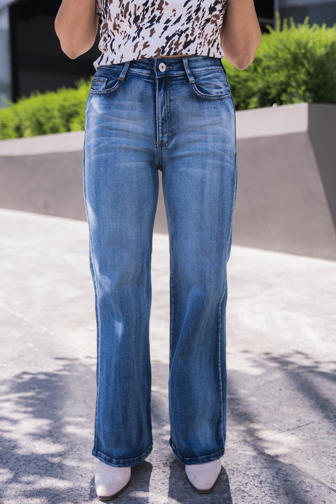 Jeans wide leg de tiro alto