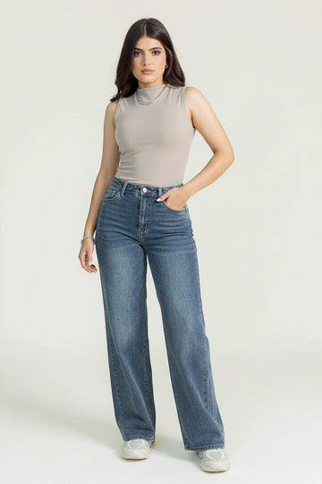 Jeans wide leg de tiro alto. Diseño de pierna ancha y corte recto.