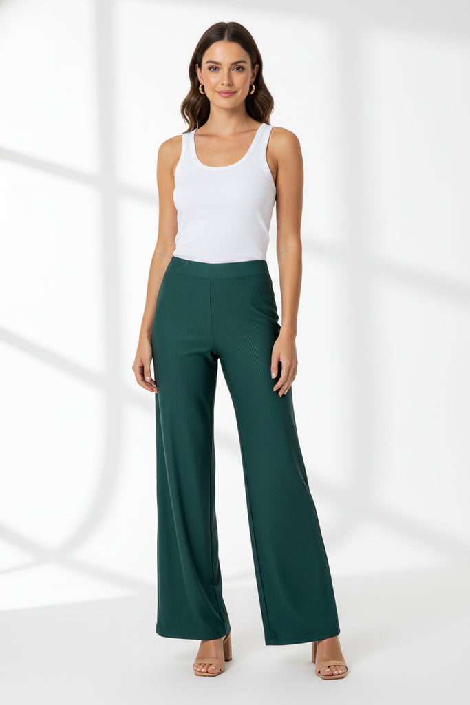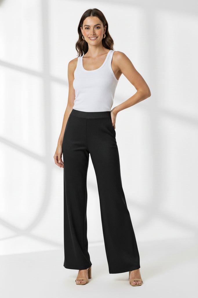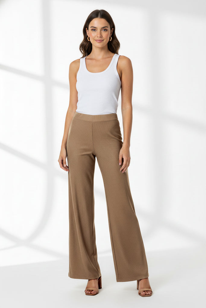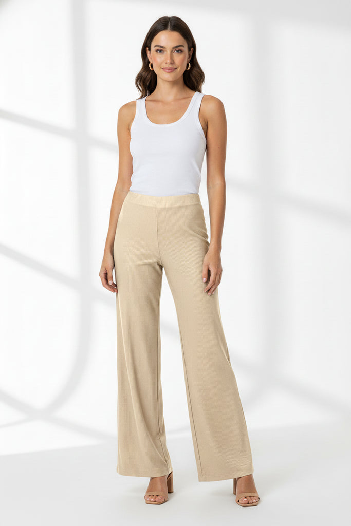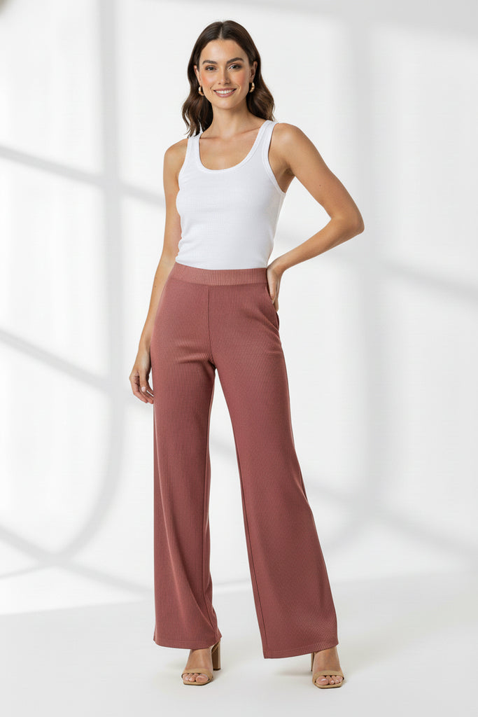 Pantalón rib satin. De tiro alto y corte wide leg.